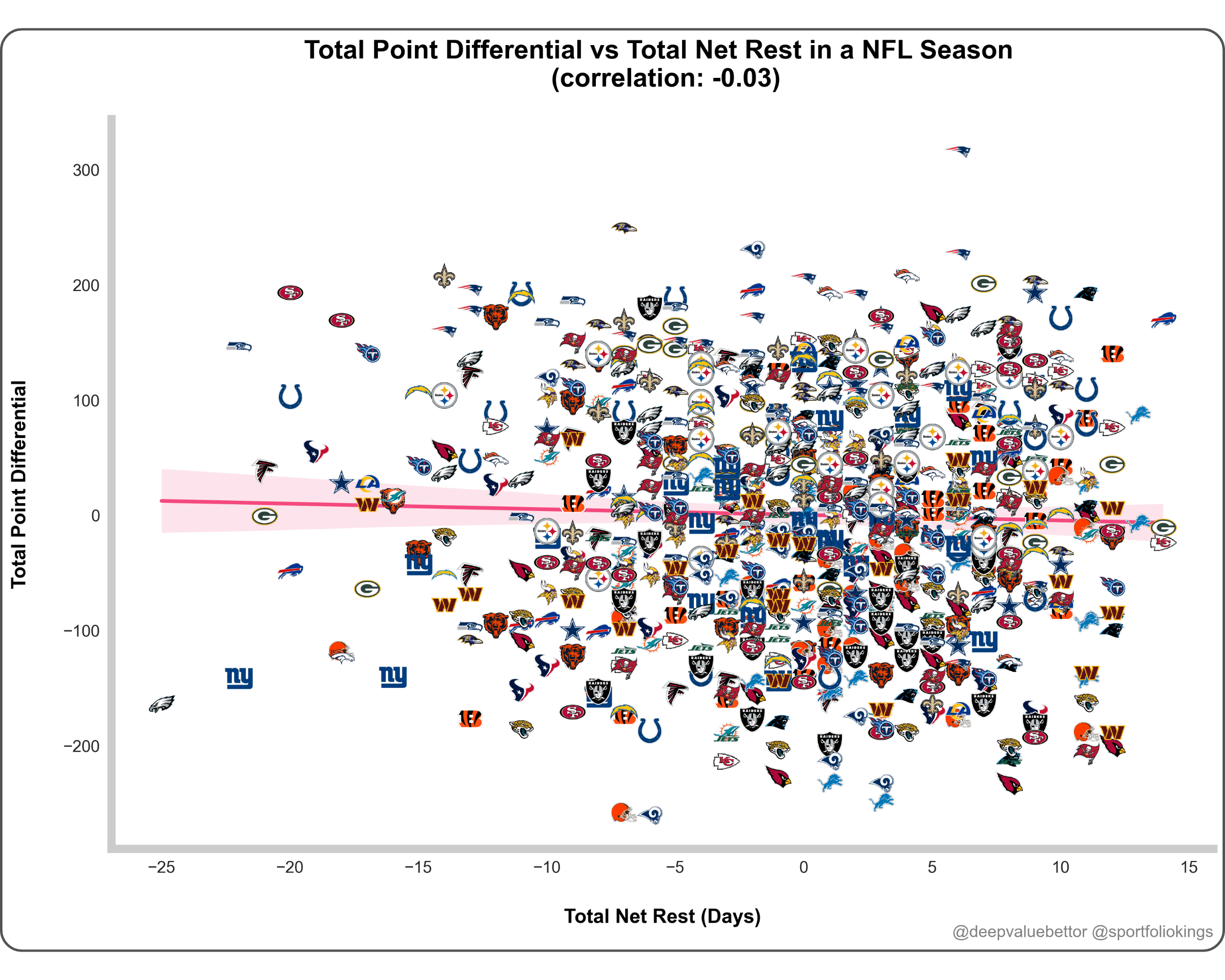 An NFL team's "net rest" relative to their opponent in any given week has long been touted as a meaningful and self-evident factor influencing game outcomes