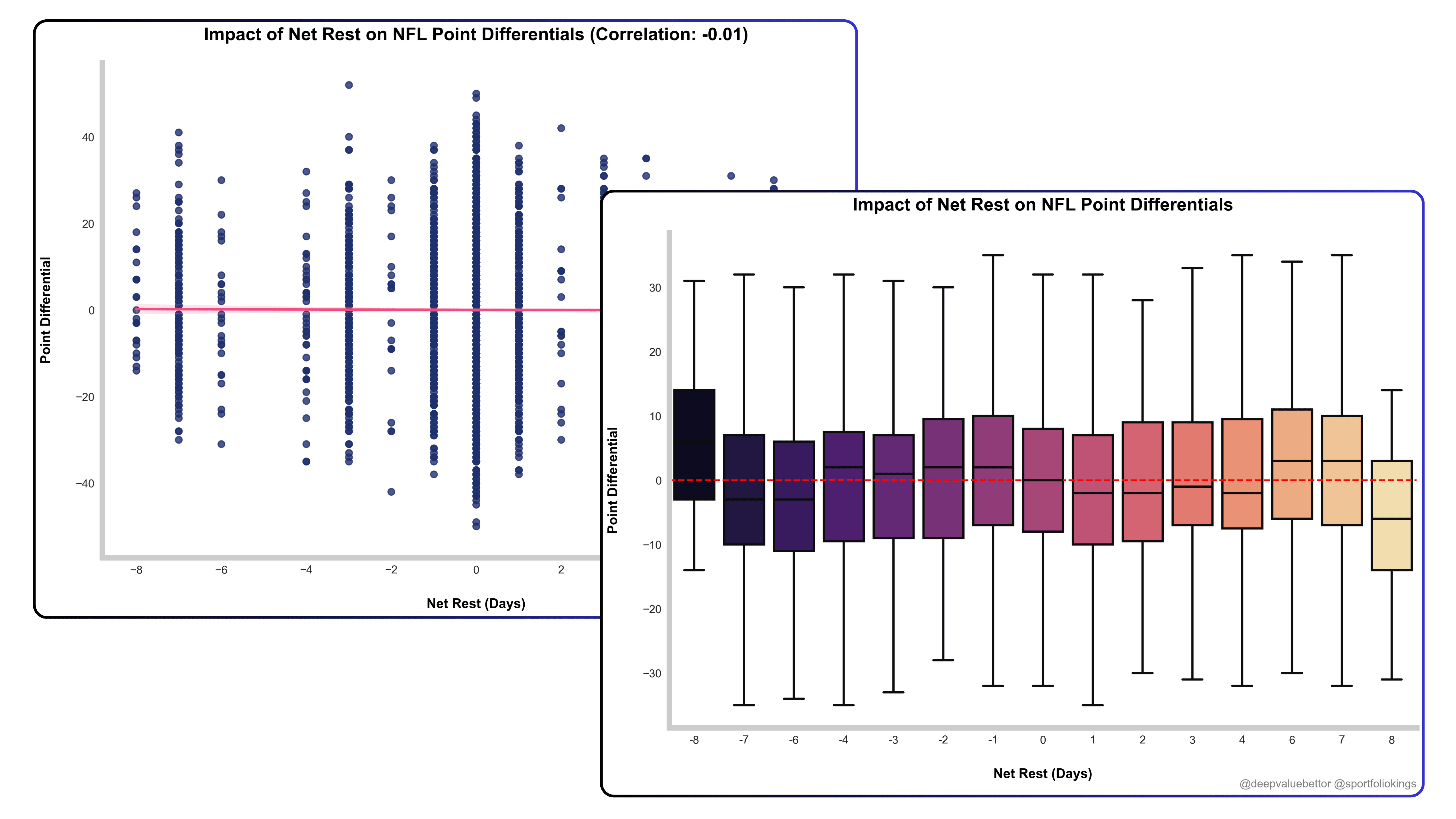 Key insight: excess net rest advantages ("net-net rest") have a more consistent and deeper impact on point differentials than the more universally appreciated advantage of a bye-week